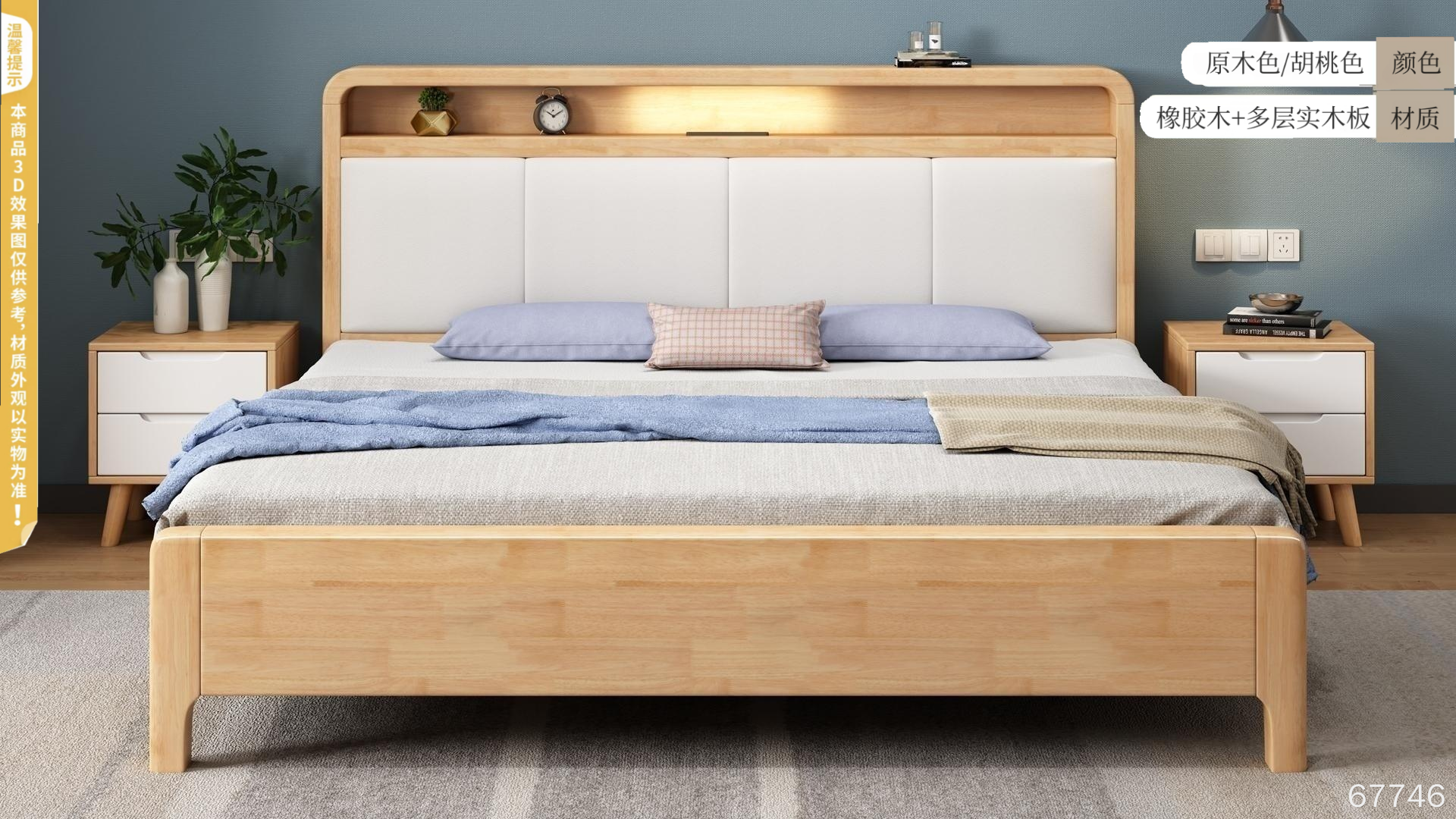 框架材质:实木+金属组合(如床腿用金属,床头用真皮软包)。
